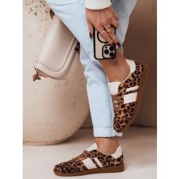 Damskie sneakersy wykonane z eko skóry oraz materiału tkaninowego. Cholewka sznurowana, buty zdobione są printem zwierzęcym. Model posiada tkaninową wkładkę oraz podeszwę kauczukową. Wyjątkowy wzór i funkcjonalność sprawiają, że są doskonałe na codzienne wyjścia i spotkania ze znajomymi.