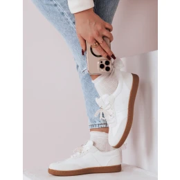 Sneakersy damskie sportowe na płaskiej podeszwie, wykonane z eko skóry. Model posiada podeszwę kauczukową oraz tkaninową wkładkę. Sneakersy te posiadają dekoracje w formie pereł na sznurówkach. Komfortowe i funkcjonalne, sprawdzą się podczas codziennych aktywności.