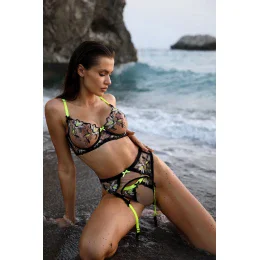 Jemná, ale provokativní barevná tanga V-10148 s vyšívaným květinovým motivem jsou vynikající volbou pro zvláštní příležitosti. Jsou smyslně průhledné a jemně měkké a představují splněný sen o dokonale přizpůsobeném spodním prádle. Je zakončen neonovou saténovou stuhou, která vybízí k tomu, abyste popustili uzdu své fantazii. Zadní část kalhotek jemně zakrývá horní část hýždí.