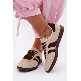 Dámské sneakersy vyrobené z ekologické kůže jsou stylovým doplňkem pro každodenní stylizace. Nízký střih zajišťuje univerzální vzhled, díky čemuž se boty skvěle hodí k mnoha outfitům. Klasické šněrování umožňuje dobré přizpůsobení noze a dekorativní pásky po stranách podtrhují módní vzhled modelu. Jsou to pohodlné sneakersy, které spojují praktičnost s aktuálními trendy a hodí se jak na procházky, tak na aktivní den ve městě. Při výběru velikosti se řiďte tabulkou velikostí.