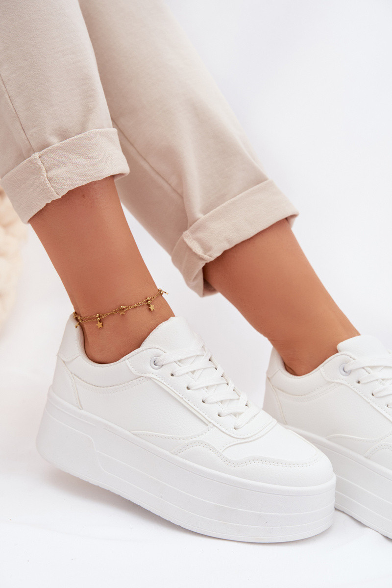 Stylové dámské tenisky z eko kůže jsou ideální kombinací pohodlí a moderního stylu. Umístěny na masivní platformě přitahují pozornost a zeštíhlují postavu. Vložka z pěny, navíc potažená měkkým materiálem, zaručuje pohodlí při nošení i po dlouhou dobu. Tento model se skvěle hodí do každodenních outfitů. Při výběru velikosti se řiďte tabulkou velikostí.