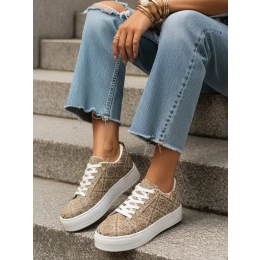 Dámske šnurovacie tenisky na hrubej podrážke béžovej farby FashionStreet ZY1379