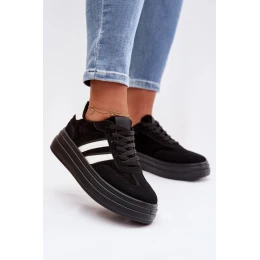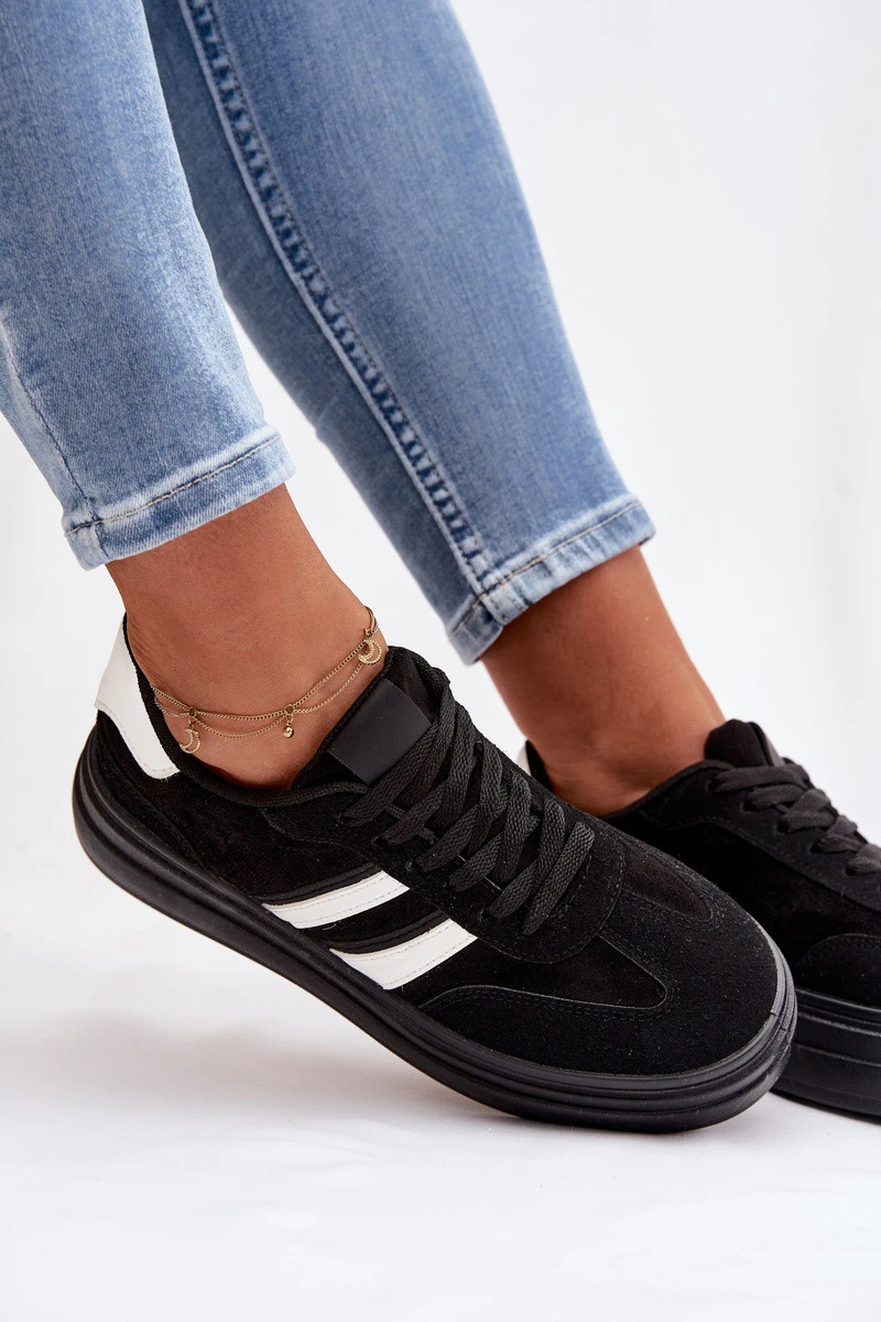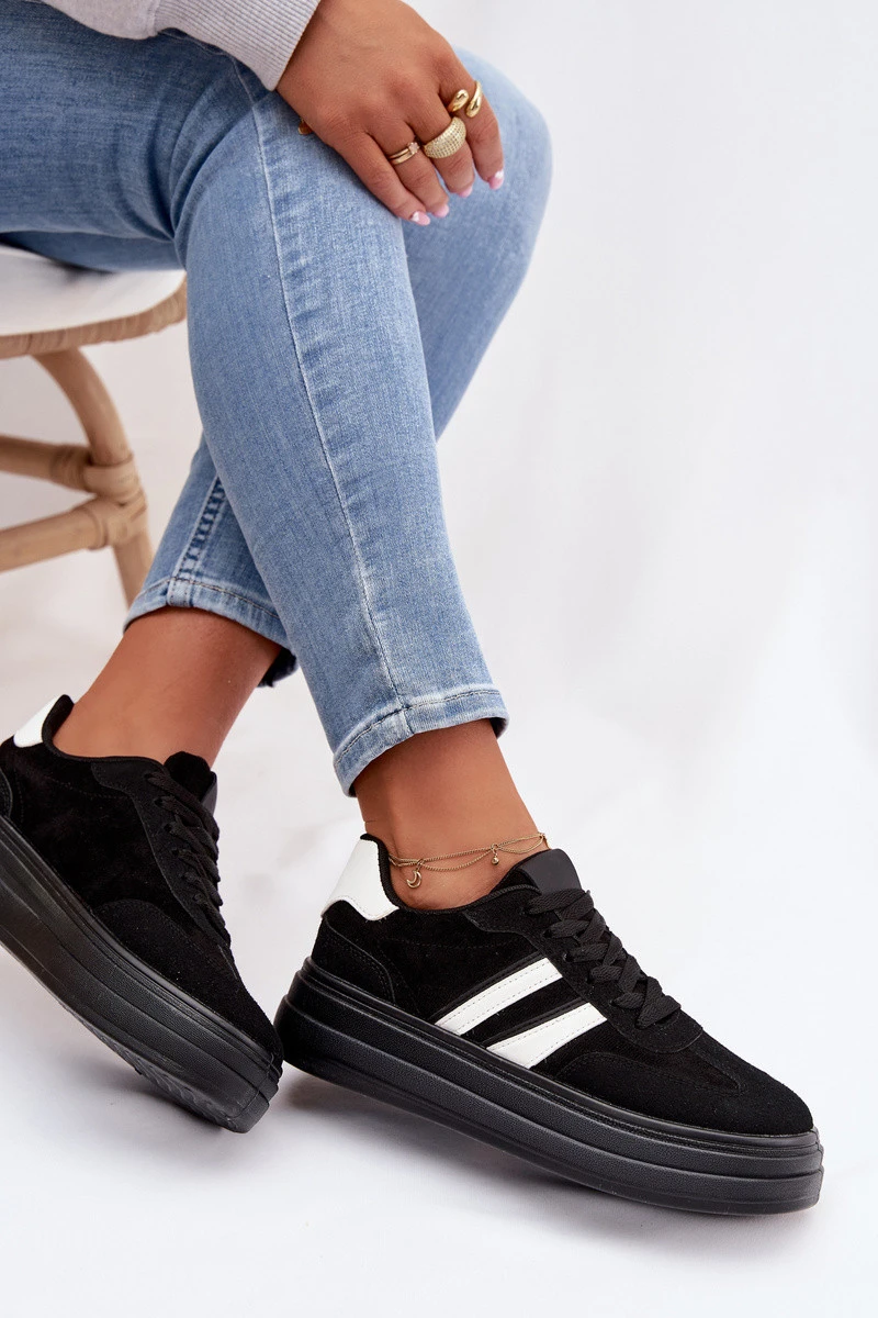 Stylové dámské tenisky z eko semiše jsou pohodlnou volbou na každý den. Model na platformě jemně zvýrazňuje siluetu a zajišťuje stabilitu při chůzi. Dva pásky umístěné z boku dodávají sportovní, moderní vzhled. Měkká pěnová vložka zaručuje pohodlí po celý den, takže tenisky jsou ideální pro každodenní outfity. Při výběru velikosti se řiďte tabulkou velikostí.