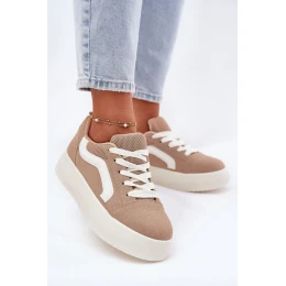 Dámské sneakersy z eko semiše jsou vynikající volbou na každý den, spojující styl a komfort. Uloženy na platformě, zajišťují pohodlí a dodatečnou stabilitu. Zaoblené špičky zaručují volnost pohybu a měkká stélka pokrytá materiálem se stará o pohodlí po celý den. Klasický design těchto sneakersů je činí ideálními pro každodenní stylizace, nabízející jak funkčnost, tak módní vzhled. Při výběru velikosti se řiďte tabulkou velikostí.