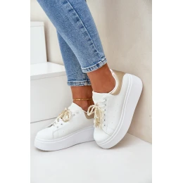 Sneakersy Damskie Na Platformie Z Ozdobami Biało-Złote Lerissna