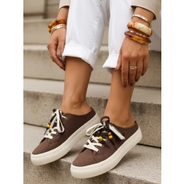 Dámske tenisky na platforme s ozdobnými korálkami cappuccino ZY1409