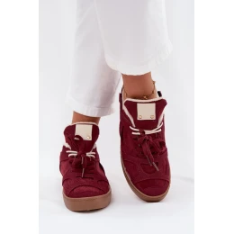 Sneakersy Damskie Na Platformie Ocieplane Futerkiem Bordowe Solvia