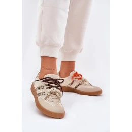 Sneakersy Damskie Z Podwójnym Sznurowaniem Panterka Beżowe Ollabes