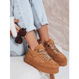 Dámské tenisky s kožešinou na platformě camel Dstreet model 21992186 - FashionStreet