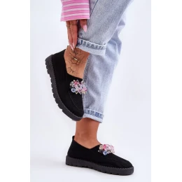 Dámske tenisky Slip-on s kameňmi Black Simple