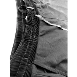 Dámské teplákové kalhoty na třikrát prošitou gumu a zavazování v pase. U gumy je látka ve stylu semiše. Spodní část kalhot je prošitá.