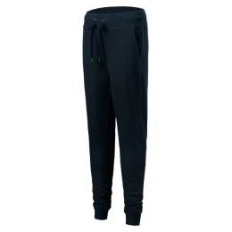 mierne zúžený strih nohavíc golier v páse z rebrového úpletu 2:2 s 5 % elastanu, sťahovacia šnúrka v páse klinové vrecká spodný okraj z rebrového úpletu 2:2 s 5 % elastanu ozdobné prešitie zvnútra nečesané