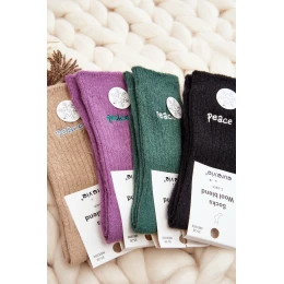 Ciepłe skarpety damskie idealne na mroźne dni. Model z delikatnym napisem. Lekki ściągacz sprawi, że będą idealnie dopasowane do tęgości nogi. Koniecznie powinnaś je mieć!