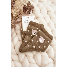 Damskie Ciepłe Skarpety W Kropki Z Misiem Zielone