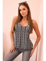 Táto štýlová dámska blúzka na tenkých ramienkach zakončená kovovou retiazkou je vynikajúcou voľbou pre ženy, ktoré ocenia originálny dizajn a pohodlie. Vzor v geometrických motívoch upúta pozornosť a dodáva celku módny charakter, ktorý je ideálny na denné nosenie aj večerné vychádzky. Vďaka jemnému, mierne lesklému materiálu blúzka krásne sedí a pôsobí veľmi žensky. Blúzka sa skvele hodí ku klasickým džínsom, ceruzkovej sukni alebo elegantným nohaviciam. Je výbornou voľbou na letné dni, dovolenkové výlety, večierky alebo rande. Veľkosť je univerzálna a bude vhodná pre dámy vo veľkosti S, M alebo L.