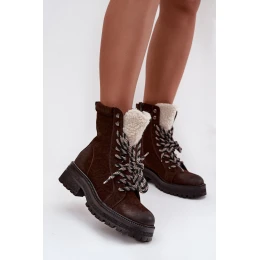 Dámské trapery boty z eko kůže čokoládové model 21744758 - Boto