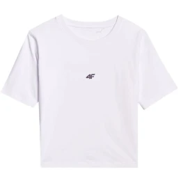 Koszulka damska 4F F2971 biała 4FWAW25TTSHF2971 10S Koszulka damska 4F sprawdzi się na co dzień. Skrócony fason typu cropped. Dane techniczne:· Materiał główny: 95% bawełna, 5% elastan· Krój slim - podkreśla sylwetkę, zapewniając dopasowany wygląd· Gramatura 180 gsm - zapewnia lekkość i komfort noszenia na co dzień· Krój slim - podkreśla sylwetkę, zapewniając dopasowany wygląd· Dominująca bawełna w składzie materiałowym- gwarantuje miękkość, trwałość i przyjemny kontakt ze skórą· Jednolita kolorystyka - ułatwia komponowanie różnorodnych stylizacji· Dzianina single jersey - miękka w dotyku, o gładkiej, przyjemnej powierzchni· Okrągły dekolt z lekkim ribowaniem - zwiększa komfort i trwałość wykończenia· Drobne odblaskowe logo 4F z przodu – subtelny detal zwiększający widoczność