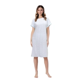 Dámska košeľa Clea 1730 značky Leveza je ľahký, ženský návrh ideálny na jarno-letnú sezónu. Je vyrobená zo 100 % prírodnej bavlny a poskytuje vynikajúcu priedušnosť, mäkkosť a pohodlie pri celonočnom nosení. Model s ľahkým lodičkovým výstrihom jemne zvýrazňuje líniu krku, zatiaľ čo znížená línia ramien zakončená jemným volánom dodáva košeli romantický a ležérny charakter. Mätová farba v kombinácii s moderným nepravidelným geometrickým vzorom vytvára svieži a módny vzhľad. Vďaka dĺžke po kolená je košeľa ideálna ako nočná košeľa aj ako pohodlný domáci odev.