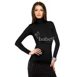 Dámske tričko Kimi black Babell - čierna farba - z veľmi kvalitnej viskózy - golier až ku krku - dlhý rukáv - príjemný materiál - jednoduchý design