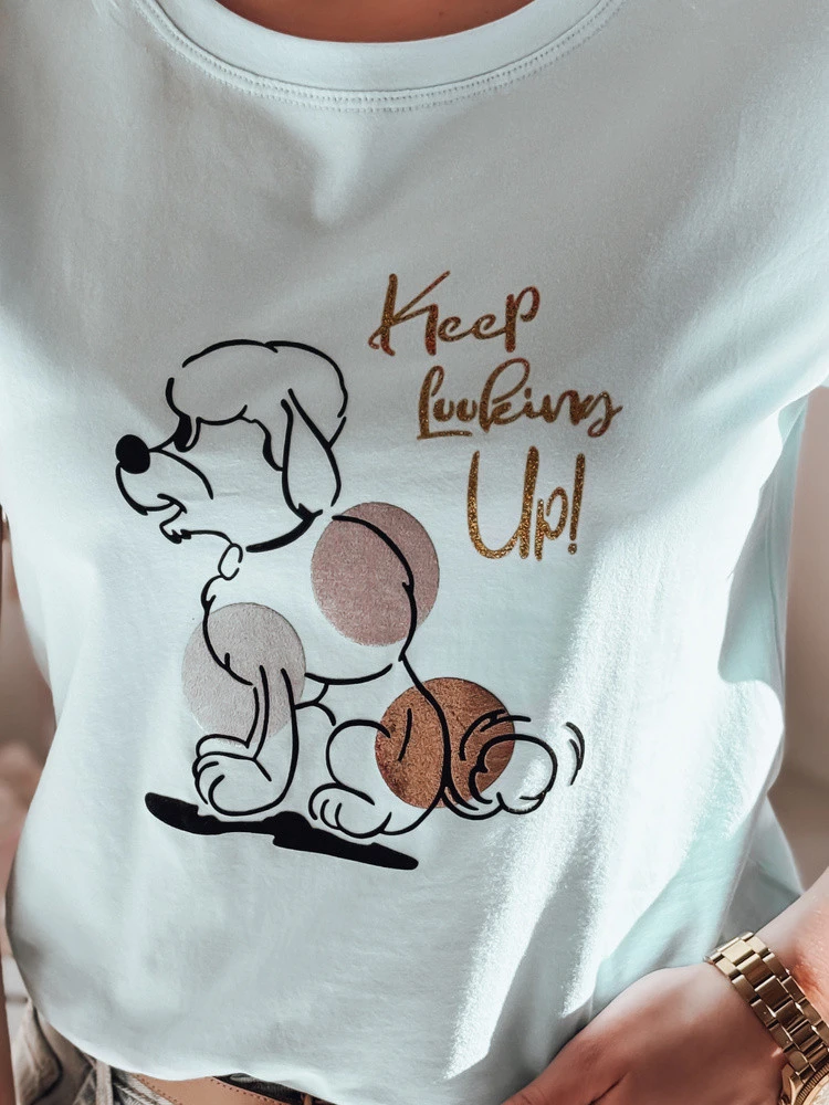Toto dámske tričko s výraznou výšivkou a nápisom je kombináciou klasiky a módnych akcentov. Je vyrobené z mäkkého materiálu a poskytuje celodenné pohodlie. Jemné detaily výšivky pudla mu dodávajú jedinečný nádych, vďaka čomu je ideálnou voľbou pre každodenné a bežné outfity. Skvele sa hodí k džínsom a teniskám, ale bude dobre fungovať aj s elegantným kompletom.