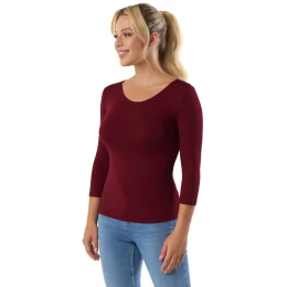 Dámske tričko Manati wine BABELL - bordová farba - vyrobené z mäkkej viskózy s elastanom - okrúhly výstrih - trojštvrťové rukávy - príjemný materiál - jednoduchý dizajn
