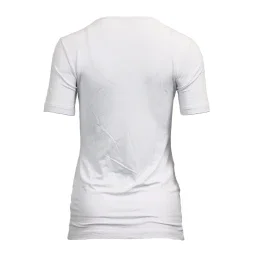 Elegantní bílé triko Linaka s výstřihem do V dozdobený kamínky Svarovski elements. Přední díl má dvojité podšití.