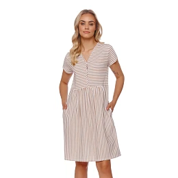 Dámská košile TCB.9928 je ideálním řešením pro těhotné ženy a kojící matky, které ocení pohodlí a styl. Model s jemnými béžovými proužky inspirovaný námořnickým stylem kombinuje nadčasový design s praktickými řešeními, která usnadňují každodenní život.