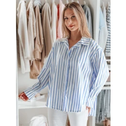 Koszula damska oversize z przedłużonym tyłem, zapinana na guziki. Luźny fason doskonale układa się na sylwetce, zapewniając wygodę przez cały dzień. Długie rękawy z mankietami na guziki dodają klasy, a wzór w paski wpisuje się w ponadczasowe trendy. Idealna baza do wielu stylizacji.