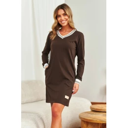 Dámska košeľa TM.4534 J/25 od značky Dr. Nap je funkčná tunika v športovom štýle, ktorá je ideálna na nočnú bielizeň aj na domáce nosenie. Je vyrobená z mäkkého úpletu príjemného na pokožku a zaručuje pohodlie počas spánku aj každodenného odpočinku. Model má výstrih do V, ozdobnú výšivku a rebrované manžety, ktoré mu dodávajú moderný charakter