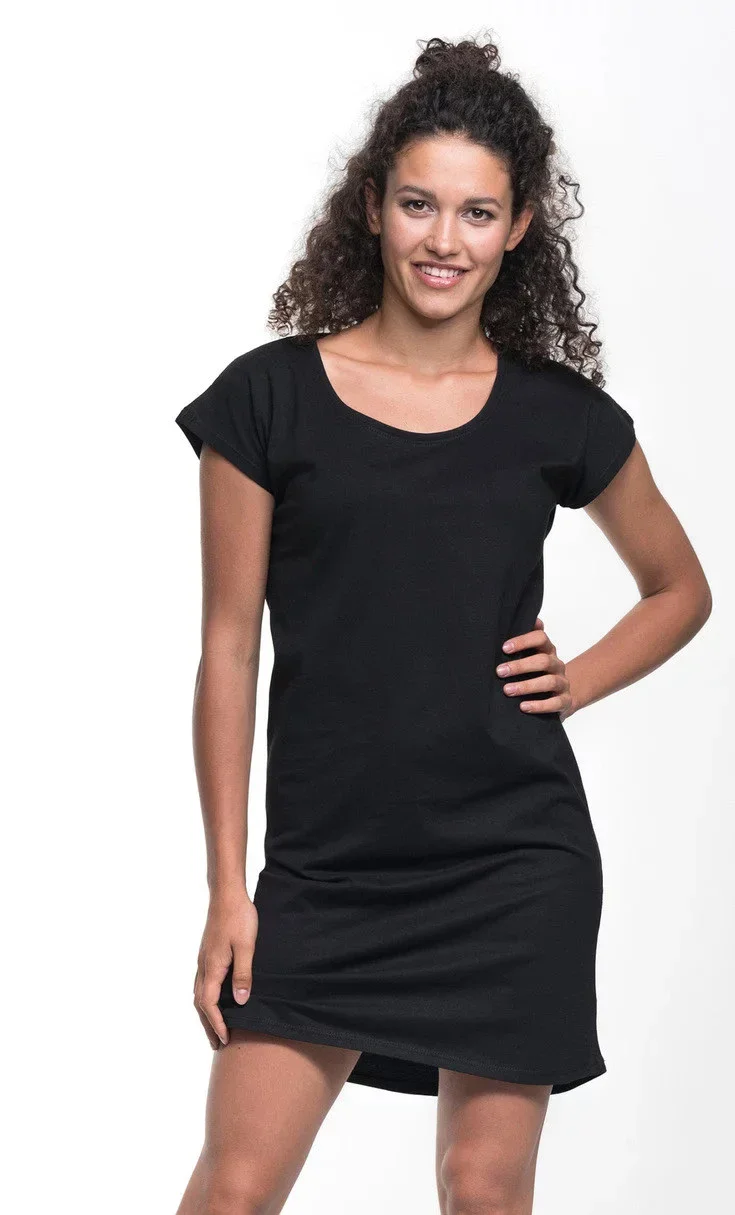 Tunika-šaty voľnejšieho, pohodlného strihu. Materiál je single jersey. Vo výstrihu lemovanie. Šaty majú elastické, dvojité švy. Gramáž: 170g / m2.