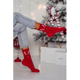 Dámske vianočné ponožky s motívom sobov - červené
