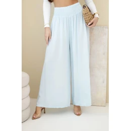 Pokud hledáte pohodlné a stylové kalhoty na každý den nebo na dovolenou, tyto dámské palazzo kalhoty jsou trefou do černého! Vyrobené ze 100% lehké, vzdušné viskózy poskytují nejen komfort při nošení, ale také krásně padnou na postavu. Široké nohavice a rozšířený střih dodávají každému pohybu lehkost a eleganci a elastický pas se skvěle přizpůsobí pasu. Ideální na procházku, nákupy i na pláž – stačí přidat jednoduchý top a je to! Univerzální model, který by neměl chybět ve vašem šatníku. Velikost je univerzální a hodí se pro ženy velikosti S, M nebo L.