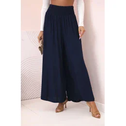 Dámské viskózové kalhoty s elastickým pasem námořnická modř