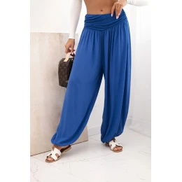 Tieto výnimočné dámske nohavice so širokými nohavicami a jemným riasením sú ideálnou voľbou na každodenné nosenie a iné príležitosti. Sú vyrobené zo 100 % mäkkej viskózy, ktorá zaručuje ľahkosť a pohodlie aj počas teplejších dní. Elastický pás poskytuje pohodlie a dokonalé prispôsobenie, zatiaľ čo voľný strih umožňuje voľnosť pohybu a moderný vzhľad. Model zakončený elastickou nohavicou v spodnej časti nohavíc dodáva nohaviciam jedinečný charakter a jemne zvýrazňuje postavu. Skvelá voľba na prechádzku, nákupy alebo relax v pohodlí domova. Vďaka jednoduchému strihu a neutrálnym farbám ich ľahko zladíte s rôznymi štýlmi - od športového až po ležérny. Veľkosť je univerzálna a bude vyhovovať ženám vo veľkosti S, M alebo L.