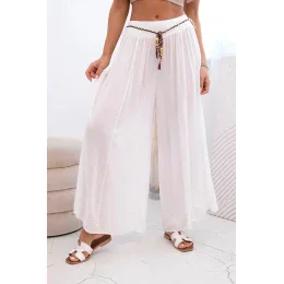 Tieto výnimočné dámske nohavice so širokými nohavicami z viskózy sú skvelou voľbou pre ženy, ktoré si cenia pohodlie a štýl. Sú vyrobené z ľahkej, priedušnej tkaniny, krásne sedia na postave a zabezpečujú pohodlie počas celého dňa. Široké nohavice im dodávajú módny, letný charakter a priložený pletený pás dodáva originálny šarm a zvýrazňuje pás.