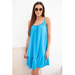 Dámske viskózové šaty bez ramienok s volánom a viazaním tyrkysové