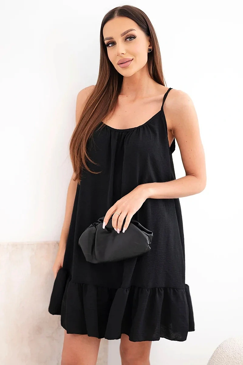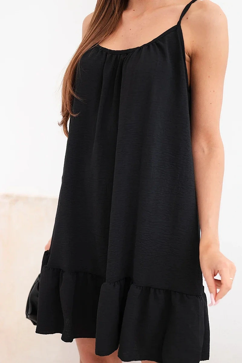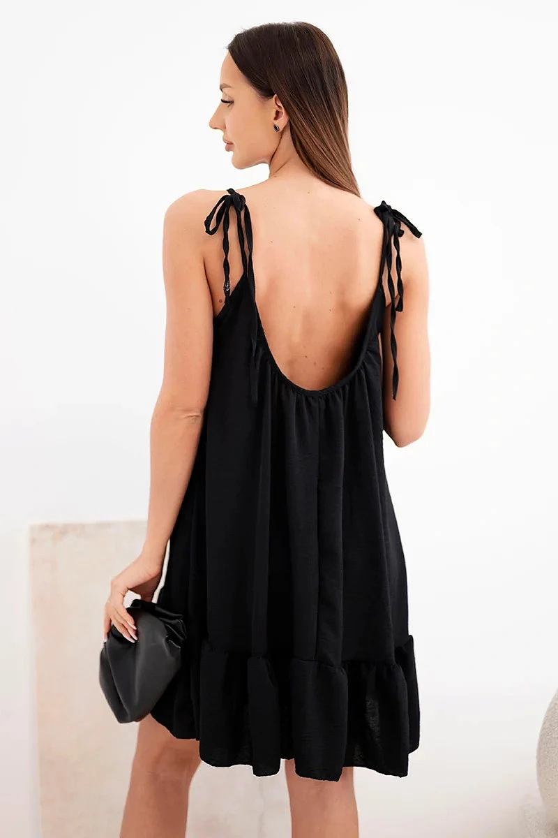 Dámske viskózové šaty bez ramienok s volánom a viazaním čierne