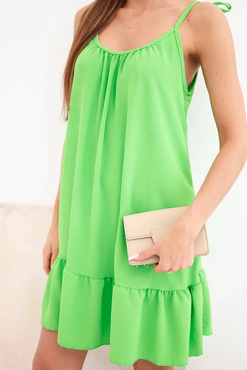 Dámske viskózové šaty bez ramienok s volánom a viazankou svetlozelené