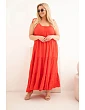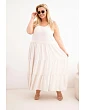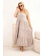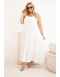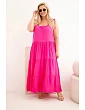 Dámské oversized šaty jsou výjimečně ženskou a pohodlnou volbou na teplé dny, která se skvěle hodí pro každodenní stylizace i během prázdninových cest. Maxi model vyniká lehkým, vzdušným střihem a jemným řasením v horní části, které se krásně přizpůsobí postavě. Ramínka zavazovaná na ramenou umožňují individuální nastavení délky, což zvyšuje komfort nošení a dodává celku jemný, romantický charakter.