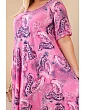 Šaty majú klasický zaoblený výstrih a krátke rukávy, ktoré zabezpečujú ľahkosť a priedušnosť. Originálny paisley vzor dodáva celku módny a výnimočný charakter, vďaka čomu model upúta pozornosť a vynikne pri štylizáciách. Rozšírená spodná časť zaručuje, že šaty krásne sedia a poskytujú pocit voľnosti pohybu.