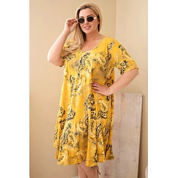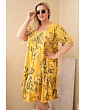 Dámske šaty z viskózy v nadmernej veľkosti s krátkymi rukávmi a vrkočovým strihom v horčicovej farbe