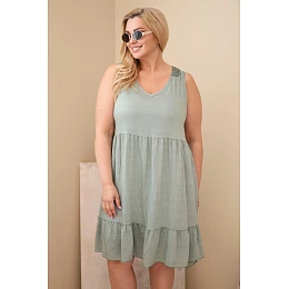 Dámske viskózové šaty bez rukávov s khaki čipkou