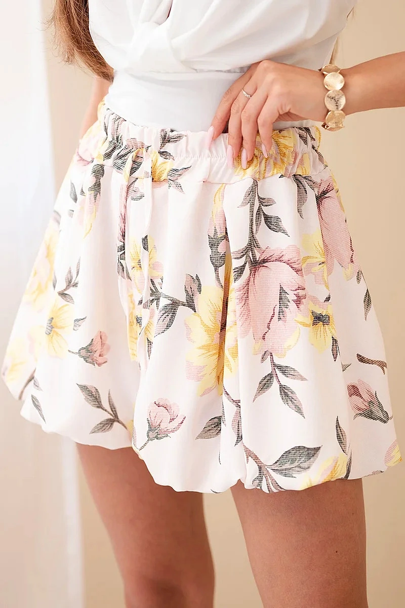 Dámske viskózové šortky s kvetinovým vzorom so zaväzovaním v páse žlté