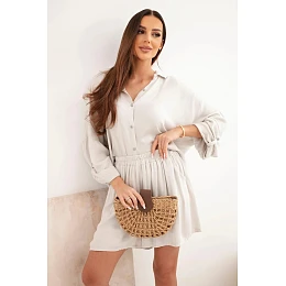 Dámske viskózové tričko s gombíkmi a voľnými šortkami béžovej farby