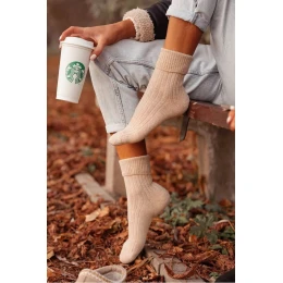 Teplé dámske ponožky v béžovom odtieni vyrobené z mäkkej vlnenej zmesi. Hrejivý materiál poskytuje pohodlie a tepelnú izoláciu, ideálne do chladného počasia a na nosenie v interiéri aj exteriéri.