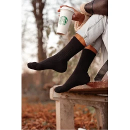 Teplé dámske ponožky v čiernej farbe z mäkkej vlnenej zmesi. Hrejivý materiál poskytuje pohodlie a tepelnú izoláciu, ideálne do chladného počasia a na nosenie v interiéri aj exteriéri.