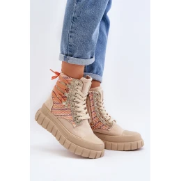 Wysokie Trampki Damskie Na Masywnej Platformie Beżowe Kernia