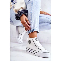 Dámske vysoké tenisky GG274013 White with Black - Big Star