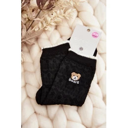 Wzorzyste Damskie Skarpety Z Misiem Czarne