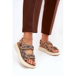 Dámské Vzorované Textilní Sandály Se Zlatými Khaki model 21688023 - Boto